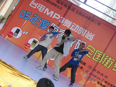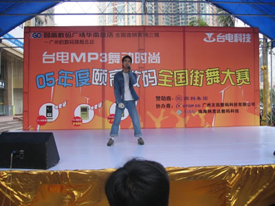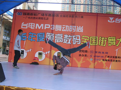 連續(xù)多日陰雨的廣州在4月2日這天奇跡般的晴朗,由商科集團贊助的“臺電MP3 舞動時尚—全國街舞邀請賽”也在這天正式拉開帷幕。魔幻的舞步、激情的