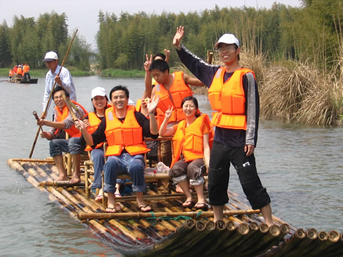 細雨竹筏,流水人家