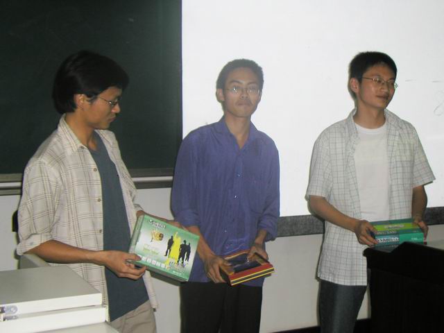 13 終于到了我們的抽獎時刻了,特等將獲得398元的精美皮具,一等獎獲得臺電128M MP3一個.......就這樣,快樂的兩個半小時就過去了。