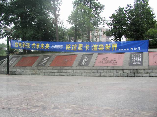 1 “臺電科技 共享未來,銘瑄顯卡 渲染世界” 中國.西部.百校行活動,于2005年5月28日下午5點來到了四川師范大學。我們一進校門,可很清楚的看見紅色的條幅“熱烈歡迎xxxxxxxxxxx的各位領導”,此時我們的心情無比的激動。