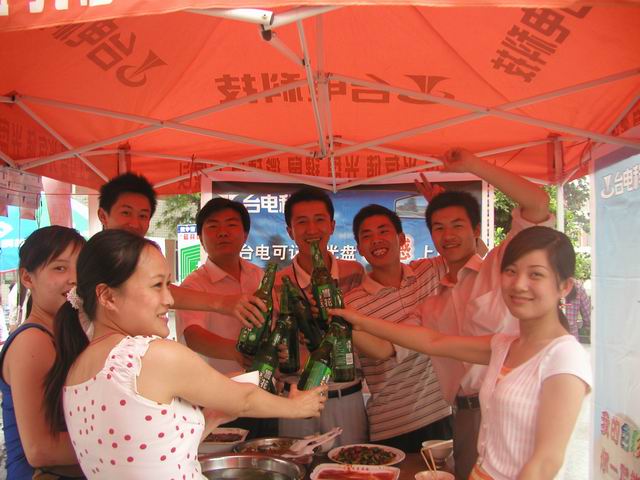 25 下午2點半,終于可以填填肚子了,好累呀,喝點小花酒,養養神。下午還要工作呢,來,為臺電和銘瑄maxaun還有SOYO的明天干杯!!