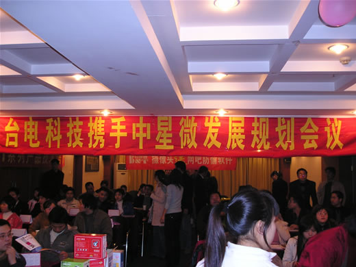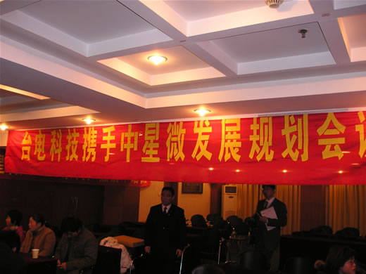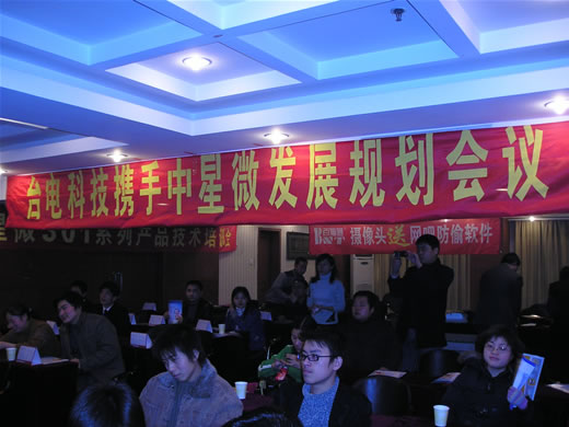會議召開前奏,南昌分公司早早來到會場把“臺電攜手中星微發展規劃會議”的大橫幅掛在會場中間,搶占了至高點,高手風范。