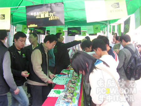 產(chǎn)品展示區(qū)的各款顯示卡吸引了不少過路同學(xué)的眼球,紛紛過來仔細(xì)觀看,并不時(shí)向工作人員咨詢產(chǎn)品細(xì)節(jié)。