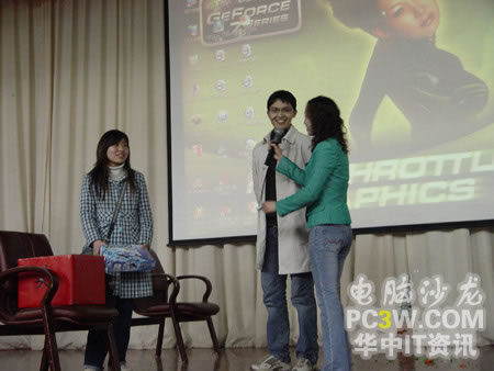 當(dāng)這位帥哥幸運(yùn)的被抽中并上臺(tái)領(lǐng)獎(jiǎng)的時(shí)候,引起臺(tái)下女生的一片嘆息聲哦。似乎有不少M(fèi)M對(duì)這款MP3情有獨(dú)鐘嘛!