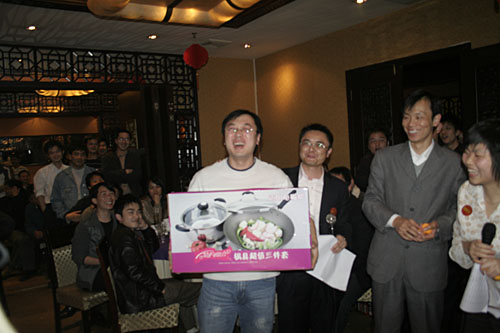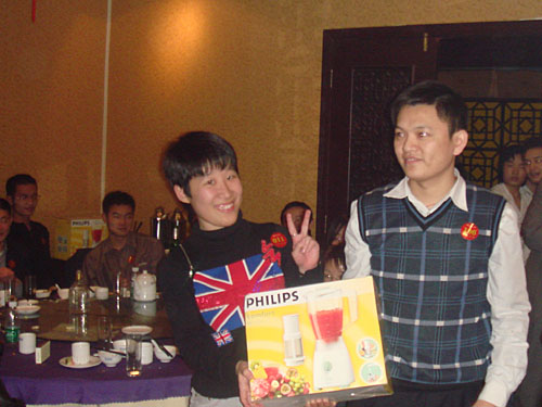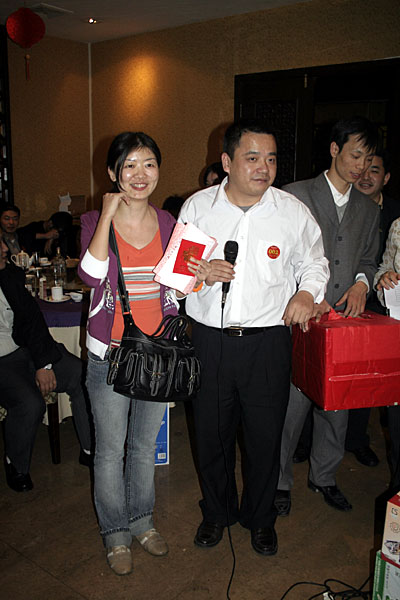 晚宴結束后,大會的最令人興奮的抽獎活動便拉開了帷幕。公司為本次大會準備包括現金大獎、名牌手表、高檔化妝品,小家電、數碼MP3U盤在內的豐富獎品。