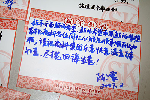 商科同仁們帶著高興與快樂的心情,紛紛在賀卡上寫下了自己對公司的美好祝愿后,帶著自己的獎品及美好的心情,以及對2007年熱切的期待,秩序離開會場。我們也祝福商科公司在新的一年里更上層樓,為社會的經濟發展做出更大的貢獻與發展。