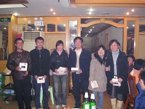 南昌分公司于2008年2月1日傍晚在玉兔飯莊吃年夜飯。總結(jié)一年的工作,慶祝新的一年的到來,南昌市的大街小巷都洋溢這節(jié)日的氣氛,商科全體員工也早早地結(jié)束了今天的工作,到南昌市有名的月兔飯莊齊聚一堂喜慶新年!