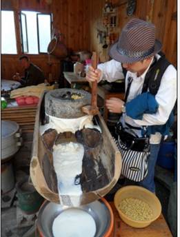 門前石板小路曲經通幽,單家獨戶,具有居高臨下的孤獨美,當濕碌碌的青石板路把你引向它的門腰時,你也許就喜歡上了他。是典型的壯家吊腳樓,他每間房間都是清一色的杉木板壁和木格門窗,有房臨景而居,人不出門就可以觀景,窗外風景由遠致近風景獨特:天空、白云、遠山、梯田。