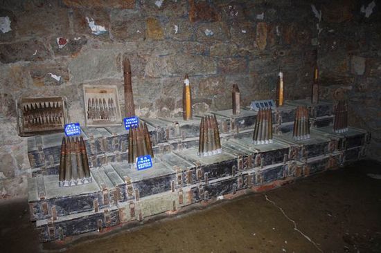 2號一早到了大連我們直奔旅順。 1880年,清政府開始修建旅順港。為了增強防衛能力,在陸地和海岸線上修了許多炮臺,配備了近100門火炮,僅在模珠礁炮臺就備炮8門,為了戰時需要又建有多處彈藥庫,南子彈庫就是其中的主要一座。它正面庫房東西長55米,南北寬23米,面積1200平方米,主庫兩側分別建有東庫和西庫兩個藥庫房,設置雖然不同,但都有通道與主庫相連,從庭院里望去,就好像四合院的廂房一樣。據史料記載,南子彈庫當年儲備有彈頭、炸藥和拉火、引信多達14種,彈藥存放量1200噸。這些彈藥大多為光緒年間天津機器局制造封裝。如果你初到此地,怎么也不會想象到下面竟是一座占地一萬多平米的彈藥庫。