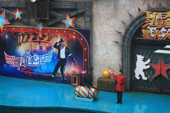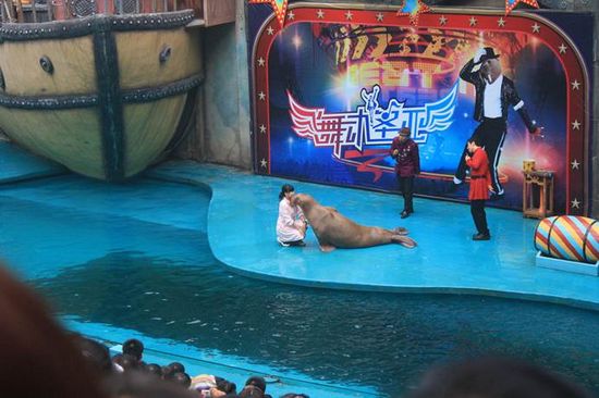 先是海獅表演,接下來是海象表演有熱身運動仰臥起坐,接著模仿MJ,重頭戲調戲美女