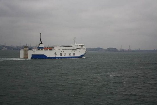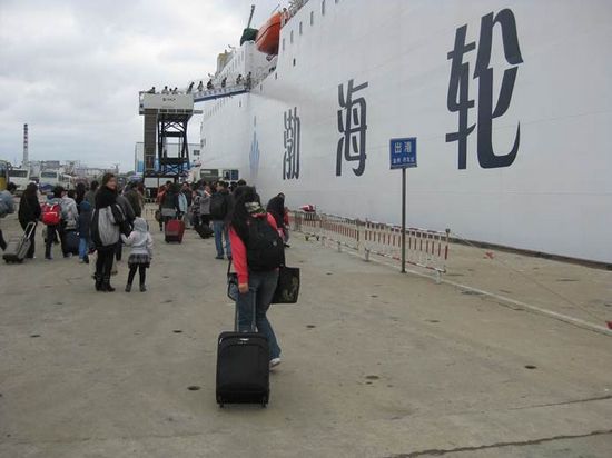 別具一格的有軌電車,據說是30年代一直沿用至今。(右上角黃色的招牌居然是“北京東來順”) 中午13:00登船離開大連。