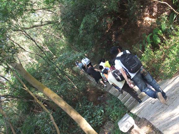 進軍好漢坡!沿著人工階梯順級而上,幾近90度的坡度讓人咋舌。