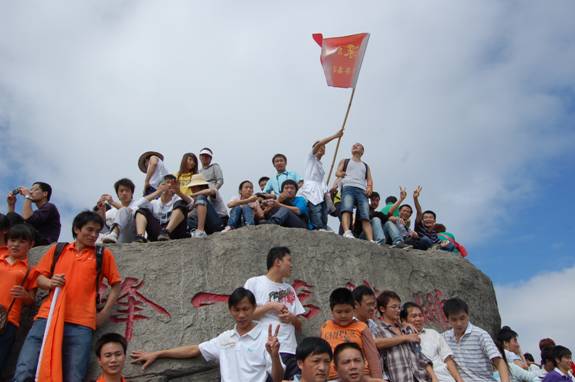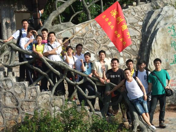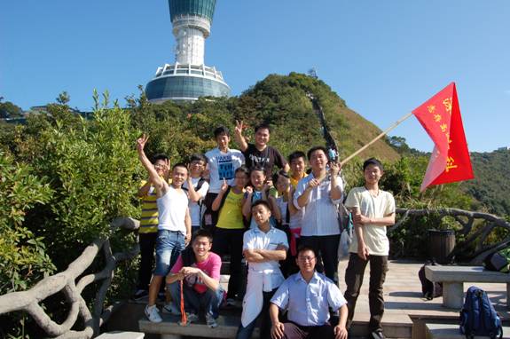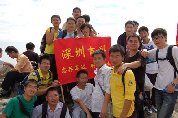 “深圳商科的紅旗在鵬程第一峰迎風飄揚----志存高遠,腳踏實地!” 歷盡千辛萬苦終于到了山頂,低頭看看那長長的臺階,心在跳,腿在抖,人到底還是上來了,“會當凌絕頂,一覽眾山小”,看著遠處的高樓大廈,有很強的成就感。