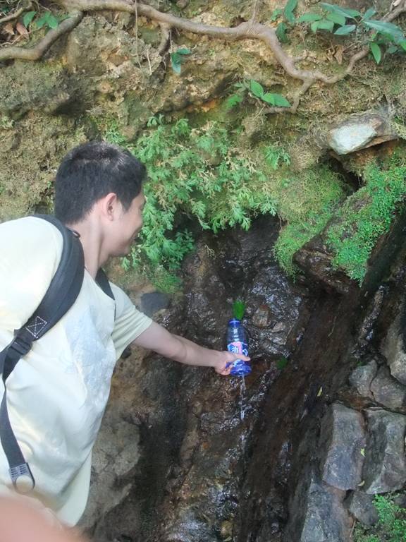 半途補充水源,排隊接山泉水。。瞧,一片樹葉,清澈甘甜的山泉水滴滴而下。梧桐山的這一方山水,對于滿眼鋼筋水泥、燈紅酒綠的深圳人來說,真可謂是一方不用燒香磕頭的心靈圣土、精神家園啊。