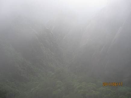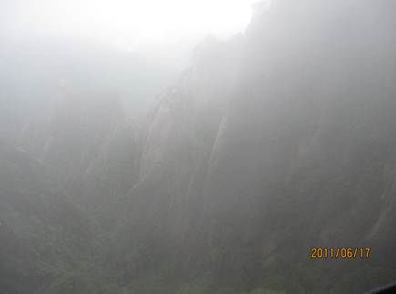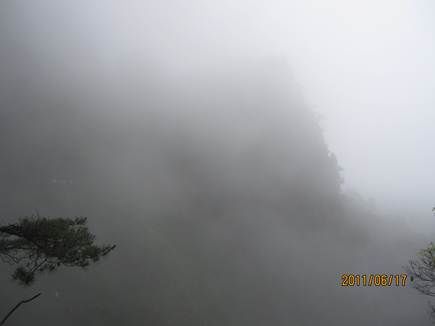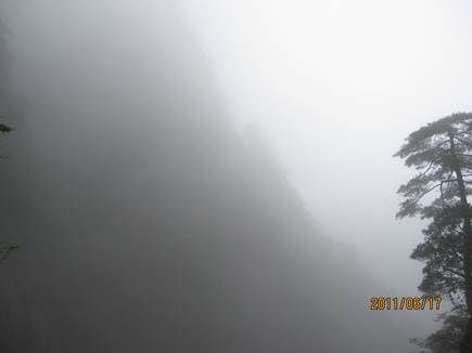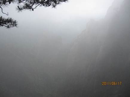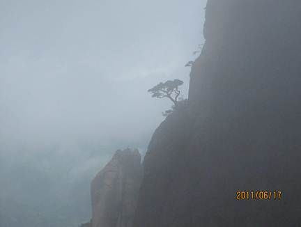 那天的三清山,由近而遠,霧色漸濃,仿佛進入仙境。近處的松,清晰可見,遠處的山巒在霧中若隱若現(xiàn),時節(jié)已進入盛夏,山上仿佛依然初春。涼涼的風,輕輕地吹著薄薄的雨衣,靜靜地感受著風吹雨衣的聲音,柔柔的呼吸著大山中的有氧離子,心里頓時得到釋放。