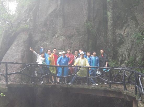 結(jié)束語:雖然本次旅游的時間由于客觀原因推遲了一些, 途中還下了點小雨,但是這些都沒有影響到大家的心情,也許穿著雨衣爬山對于很多同事來說是人生的另一番體驗,額頭上除了汗水還有雨水,溫溫的汗水混合涼涼的雨水,給各自帶來的靈感,只有自己才知道。下山后,晴朗的天氣,依然給了大家一個保持良好心情的理由。人生的旅途,不會一帆風順,也總是要經(jīng)歷風雨之后才能見晴空,大家在經(jīng)歷風雨的時候,請一定要記住,晴空就在前方,祝福大家。