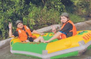 漂流河道設計者,巧奪天工,河道順山勢無盡曲折旋回,漂流舟高高躍起,左右回旋,扎入水中,又高高躍起,又高低回旋扎入水中……讓漂流者充分享受竄上云霄,極速墜地的刺激有驚無大險!不過感覺最爽最刺激還是中游處的黑隧道電閃漂!