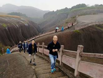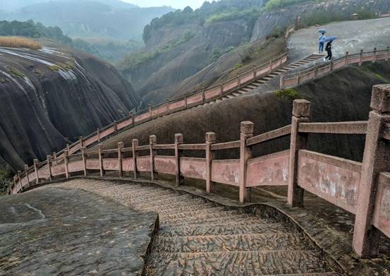 在微雨的郴州我們迎來十二月的第一天。空氣濕潤,氣溫微涼,讓人神清氣爽。乘坐大巴車來到古代著名旅行達人徐霞客打卡的飛天山。他曾贊嘆飛天山“無寸土不麗,無一山不奇”,境區山頂相連,溝壑縱橫,山環水繞,寨坦錯落,精巧處如精雕細琢,巧奪天工,宏偉處如橫空出世,壯志凌云。