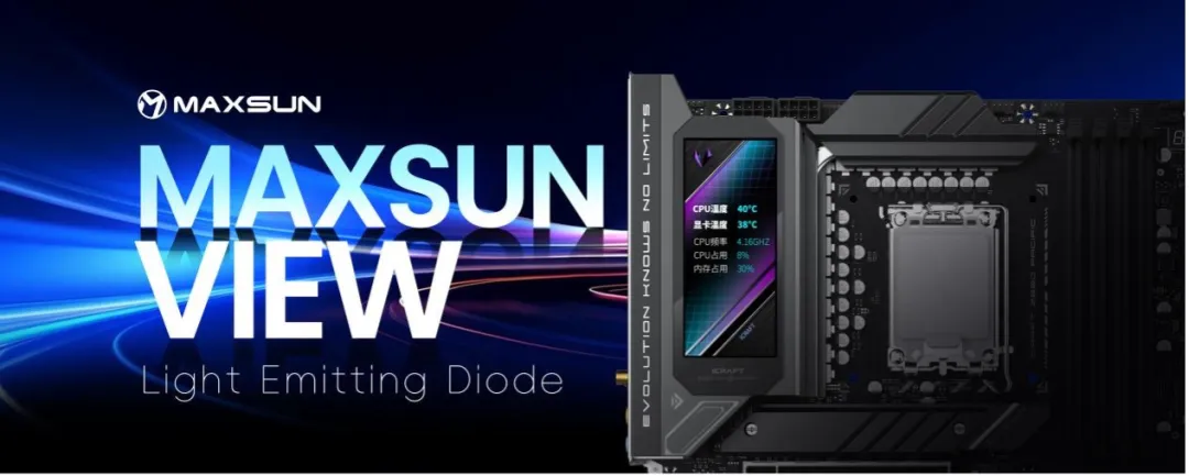 800iCraft系列主板創新配備一塊全新銳影屏,配套顯示屏軟件MAXSUN VIEW也應運而生。銘瑄科技主板BU總經理王榮先生介紹了銳影屏的核心理念——全屏定義,通過MAXSUN VIEW屏控軟件,除了能夠實時顯示溫度、頻率和系統占有率以外,還可以實現全屏幕主題自定義、DIY點陣動畫、桌面投影三大功能。